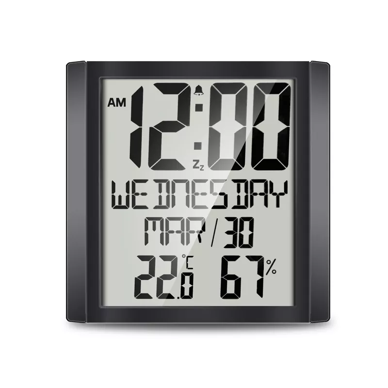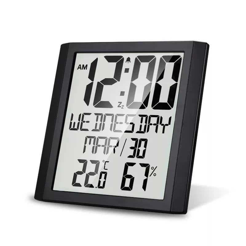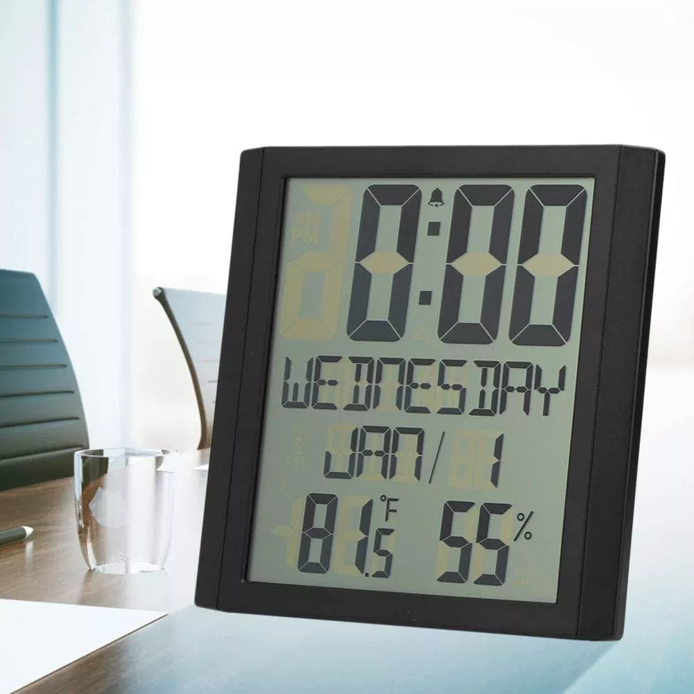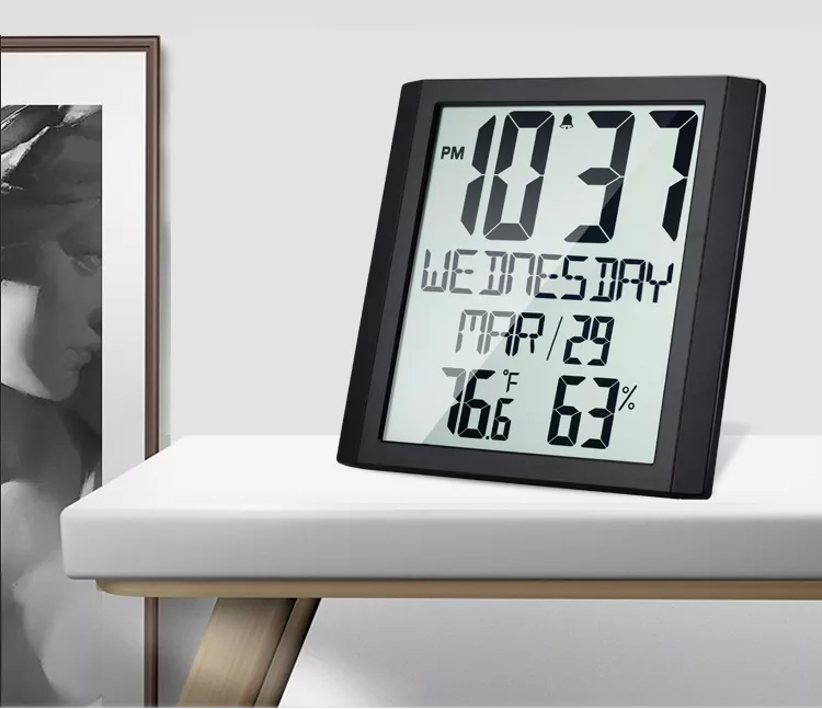 זמן מפגש לוח שנה דיגיטלי 8.6 אינץ' גדול גופן תצוגה דיגיטלית לוח שנה לוח שנה עם תצוגת זמן, תצוגת טמפרטורה ולחות, הגדרת אזעקה, הליכה שקטה פרידה מצליל מכני, מצב תצוגה של 12 או 24 שעות למעבר.
