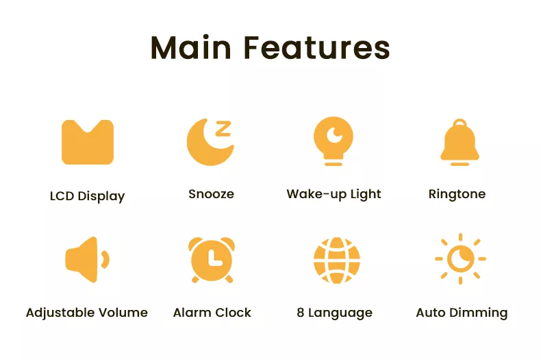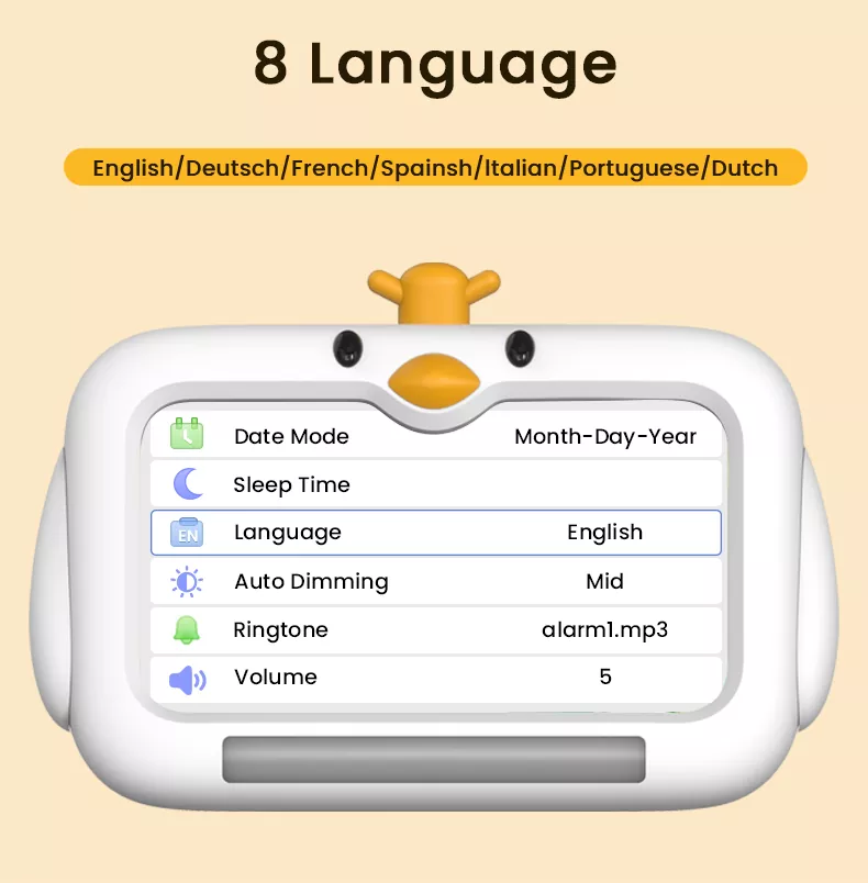8. עוצמת קול מתכווננת לאזעקה / רעש לבן / הודעת השכמה